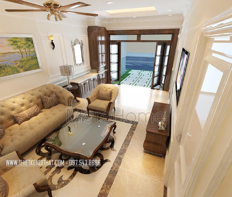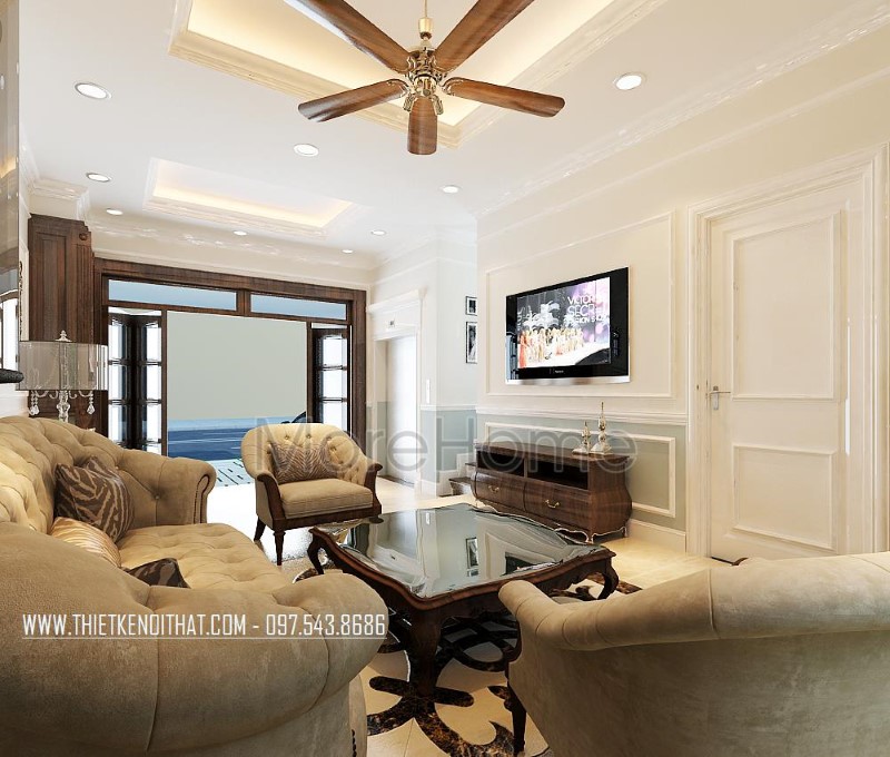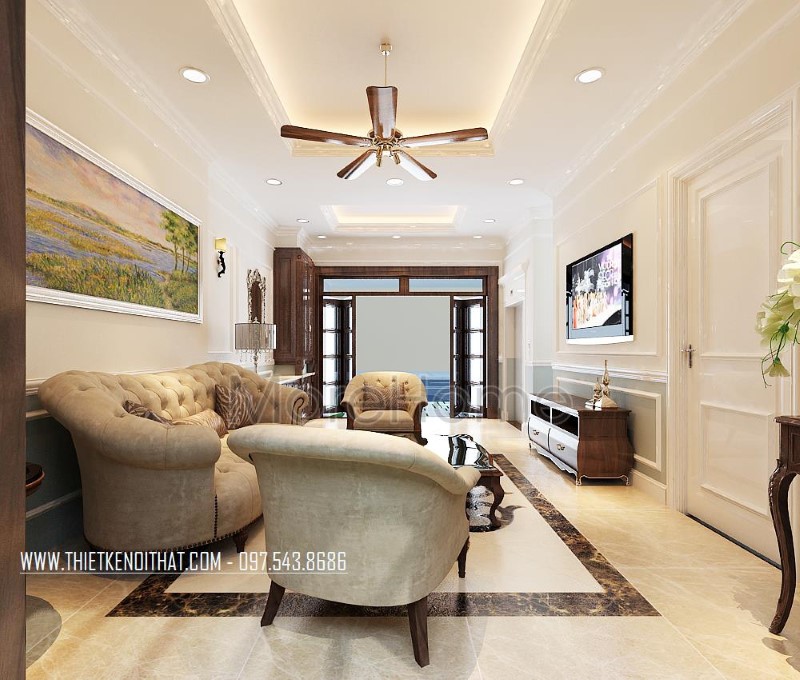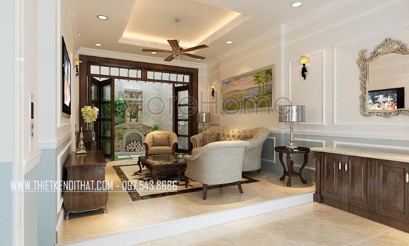 Thiết kế nội thất gỗ óc chó tự nhiên cho biệt thự Nguyễn Chí Thanh
