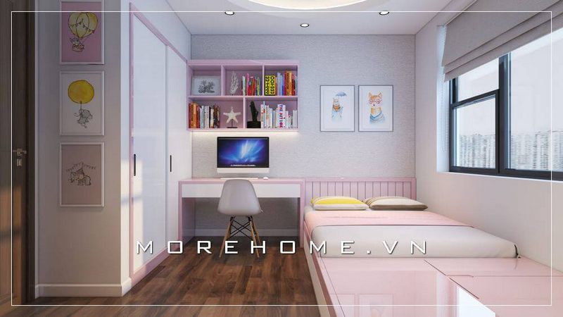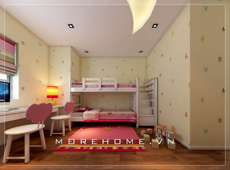 Thiết kế phòng ngủ bé gái hiện đại, giường tầng là nội thất được lựa chọn trong hầu hết căn hộ chung cư diện tích nhỏ với nhiều thành viên
