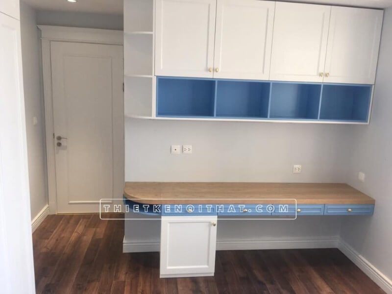 Thi công bàn học kết hợp tủ sách cho phòng ngủ trẻ em tại chung cư Dcapital Trần Duy Hưng Cầu Giấy Hà Nội